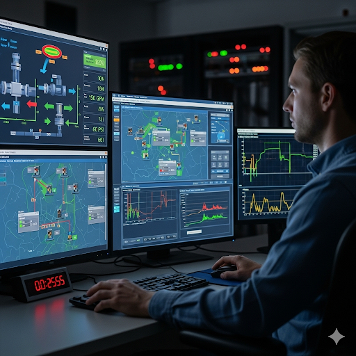 Desarrollamos pantallas gráficas de control SCADA para un monitoreo completo. Nuestro objetivo es optimizar procesos , reducir costos y lograr una gestión más eficiente de recursos como el agua y la energía eléctrica.